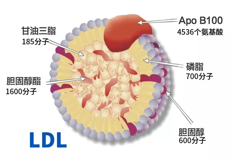 低密度脂蛋白(LDL)是一種運(yùn)載膽固醇進(jìn)入外周組織細(xì)胞的球形脂蛋白顆粒,核心包括1600 個膽固醇酯、700 個磷脂和600個游離膽固醇分子;LDL標(biāo)志蛋白Apo B-100[1]。