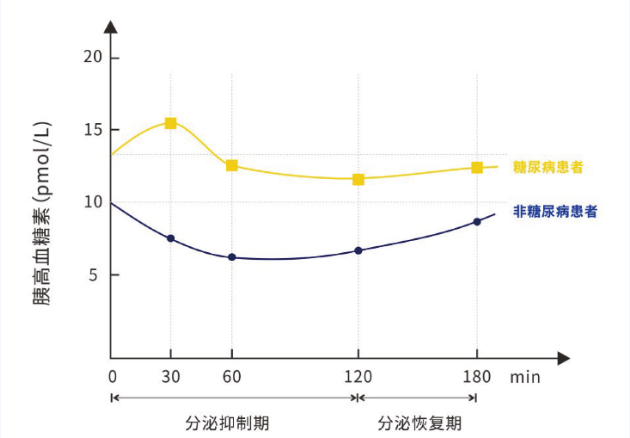 依據(jù)糖尿病患者糖耐量試驗(OGTT)、胰島素釋放試驗、C肽釋放試驗的數(shù)值及胰高血糖素(Glucagon)的數(shù)值可以全面判斷患者胰島細胞功能受損程度。