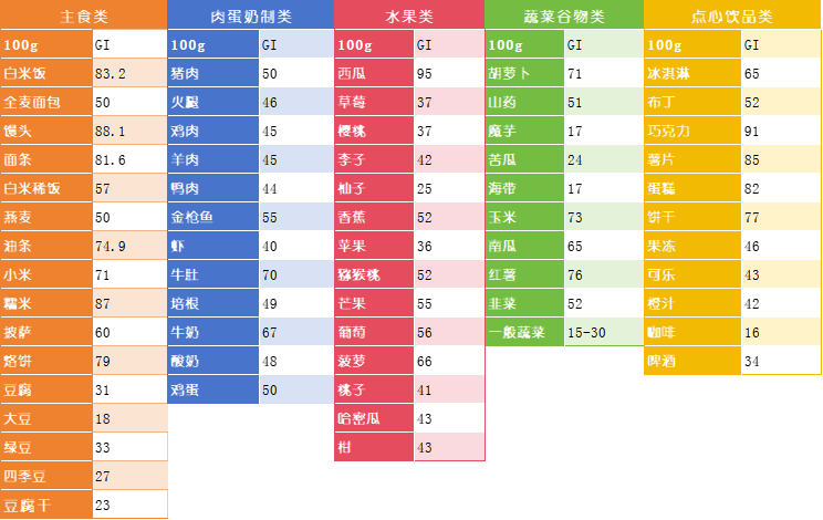 高GL食物:GL≥20。提示食用的相當重量的食物對血糖的影響明顯。