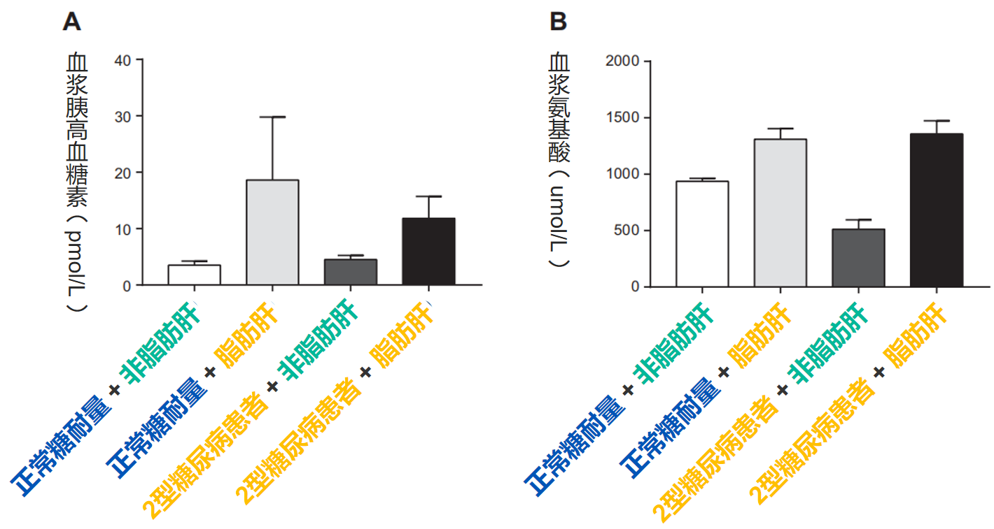 發(fā)表于美國生理學(xué)雜志上的研究“Hyperglucagonemia correlates with plasma levels of non-branched-chain amino acids in patients with liver disease independent of type 2 diabetes”指出:T2DM合并NAFLD者血漿氨基酸(特別是具有促胰高血糖素作用的氨基酸)增加,血漿胰高血糖素水平顯著升高,并可能獨立于血糖發(fā)生。